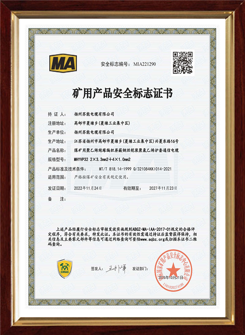 • MHYVP32 3×2×3.3+4×2×0.85mm2安标证书