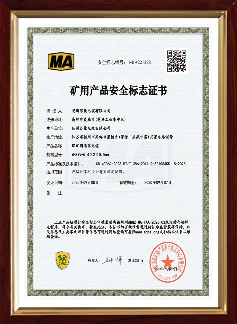 • MHSYVP 5 4 2 0.5 矿用网线安标证